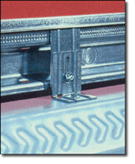 KEY-DECK® supports by attaching with sheet metal screws. Adjust KEY-DECK® supports at both ends of pour to finished floor elevation. (If using vinyl cap, adjust supports 3/16” lower.) Stretch string line over entire length of pour and adjust remaining KEY-DECK® supports to finished floor elevation. Use five KEY-DECK® supports per 10’ section of KEY-LOC® joint. Hang joint on supports and push downward. To insure perfect joint alignment, snap-in splice at joint ends. Pour against keyway side of joint first. CONTACT THE ARCHITECT OR ENGINEER IN CHARGE OF THE PROJECT CONCERNING PLACEMENT OF THIS PRODUCT. |